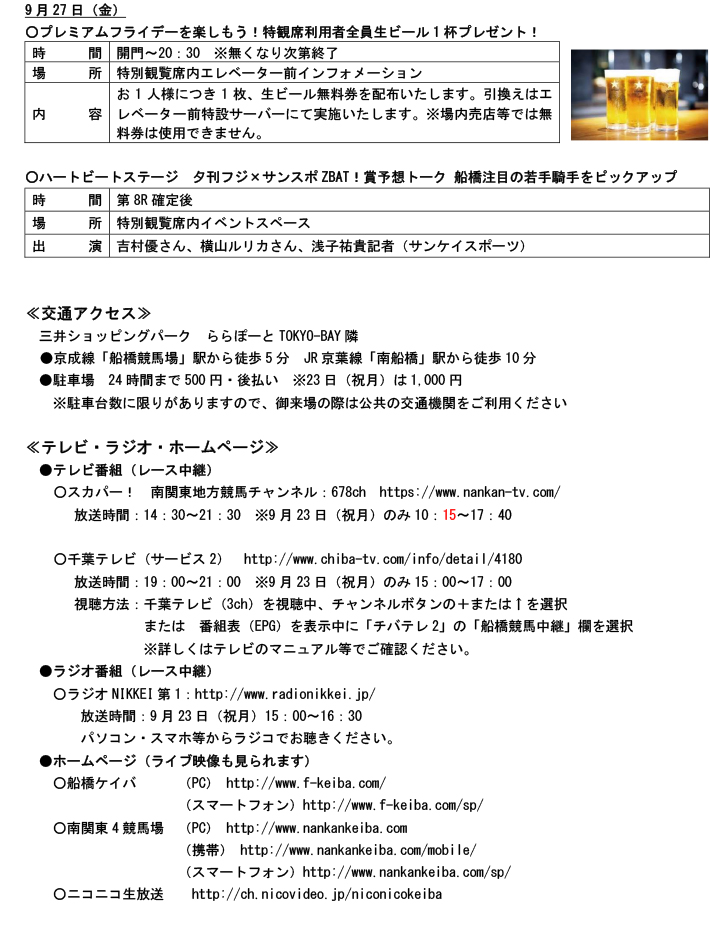 船橋ケイバ 第7回開催 〔9月23日(祝月)~27日(金)〕イベント情報
