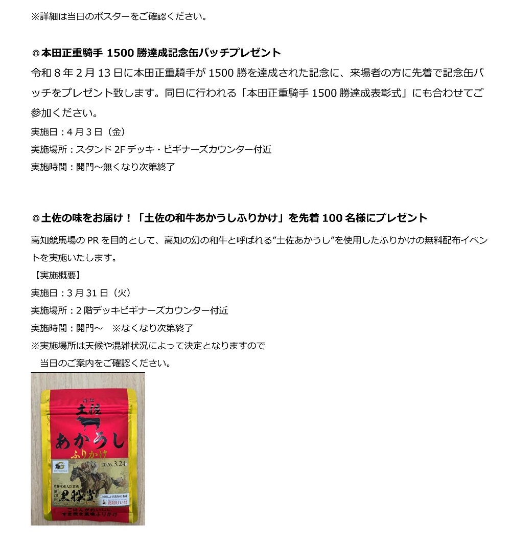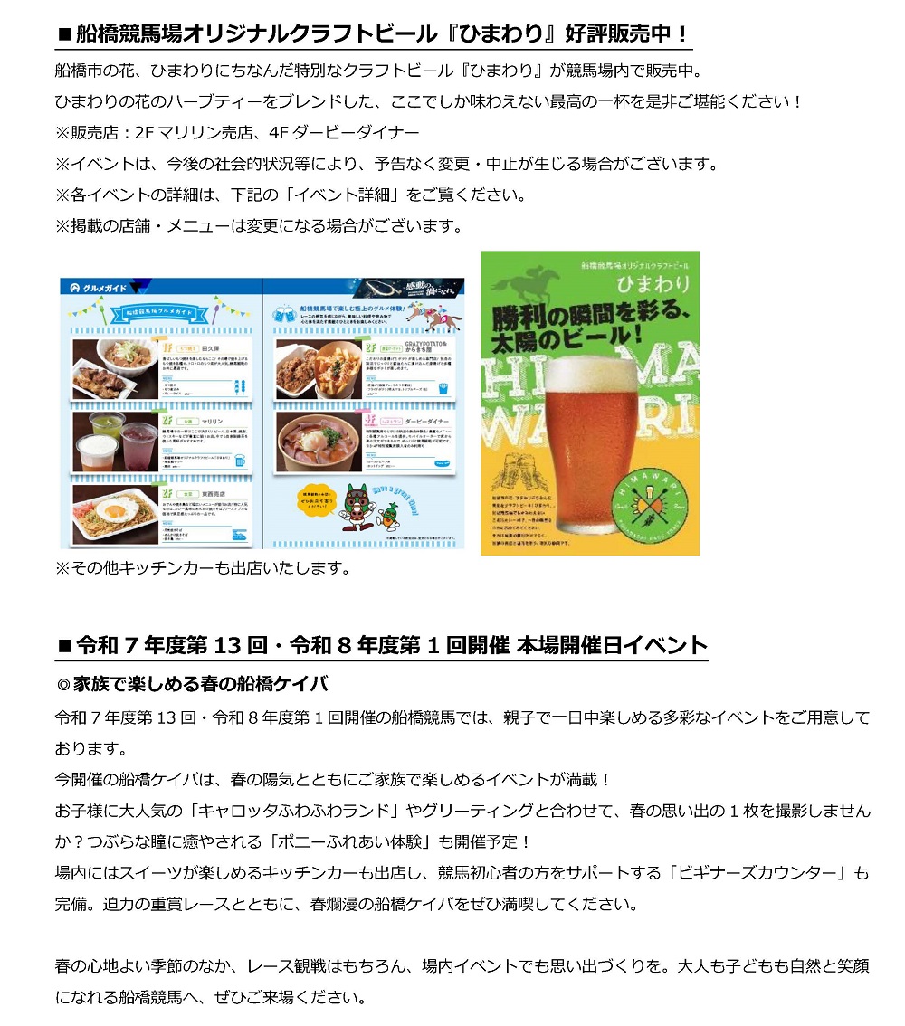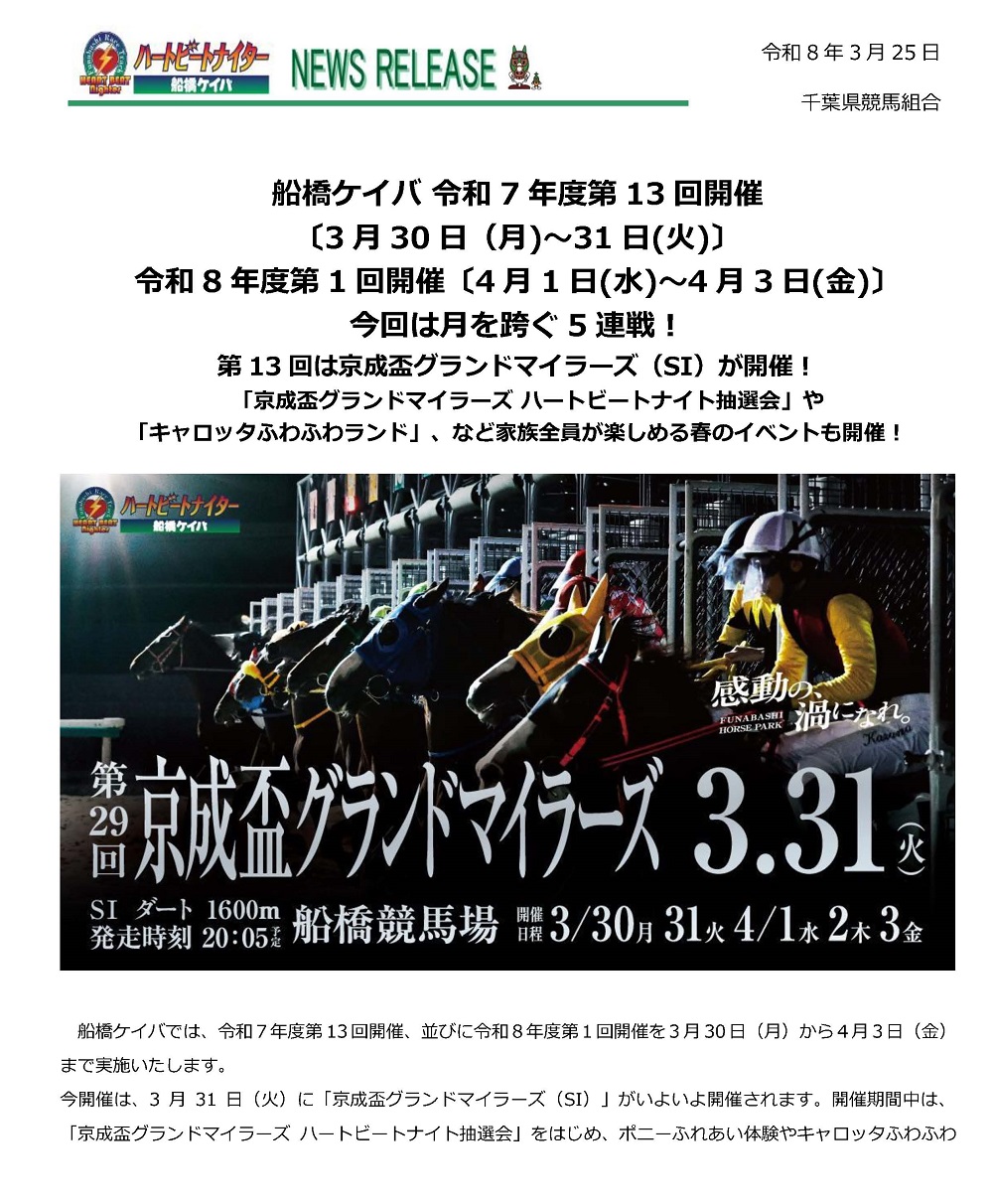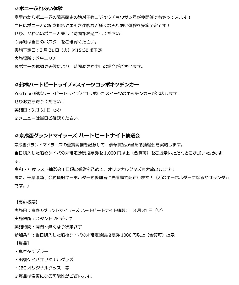 船橋競馬 令和7年度第13回開催〔3月30日(月)~31日(火)〕・令和8年度第1回開催〔4月1日(水)~4月3日(金)〕イベント情報