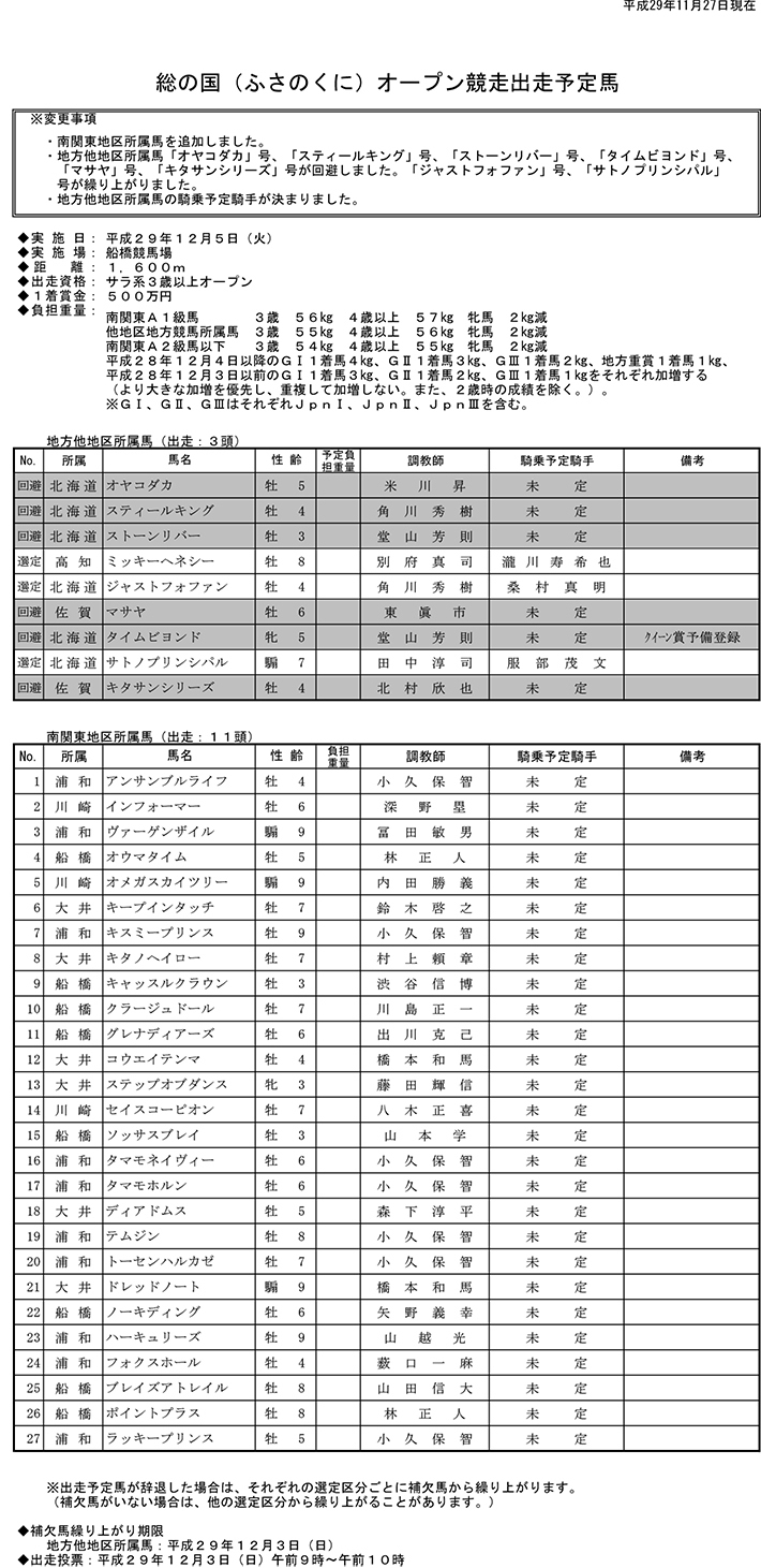 【11月28日更新】総の国(ふさのくに)オープン出走予定馬(PDF)