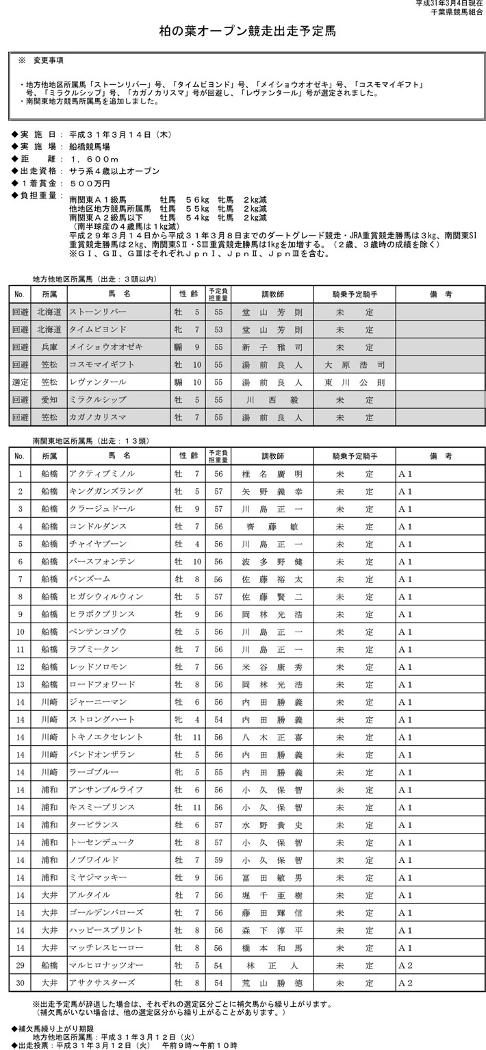 船橋ケイバ3/11(月),12(火),13(水),14(木),15(金)開催リリース