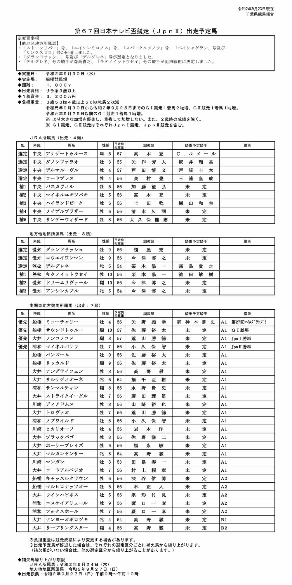 【9月23日更新】第67回日本テレビ盃競走(JpnII)出走予定馬(PDF)