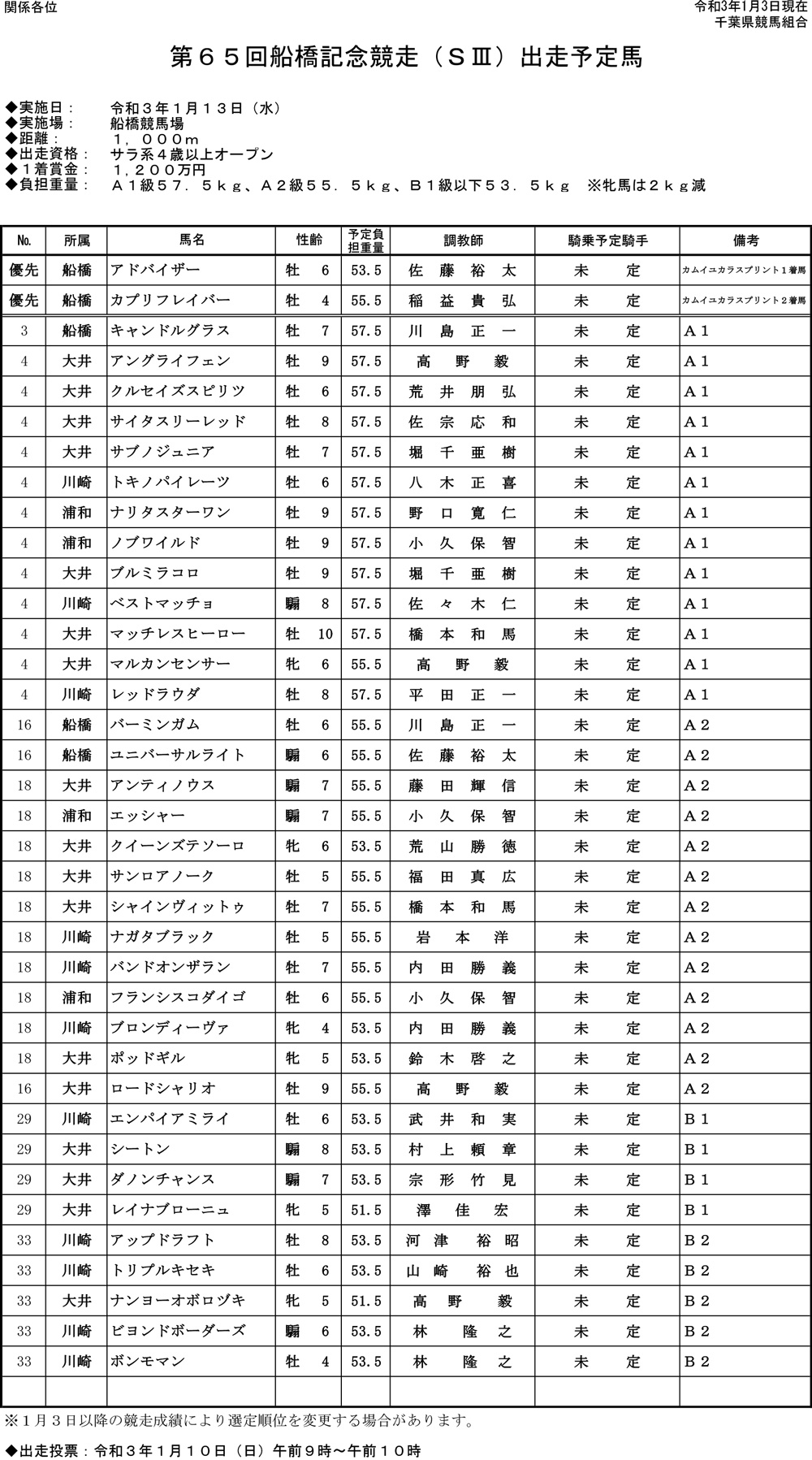 第65回船橋記念競走(SIII)出走予定馬(PDF)