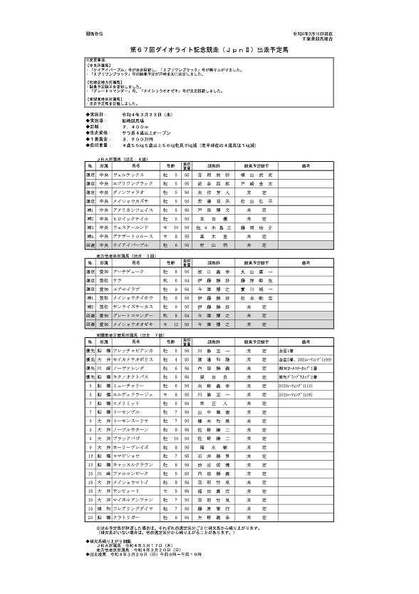 【3月16日更新】第67回ダイオライト記念競走(JpnII)出走予定馬(PDF)