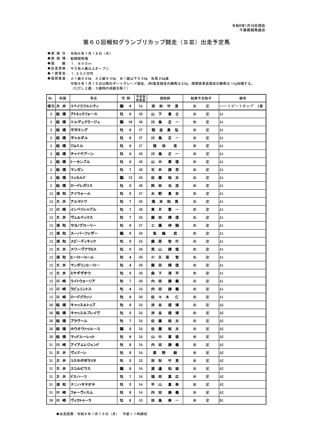 第60回報知グランプリカップ競走(SIII)出走予定馬(PDF)