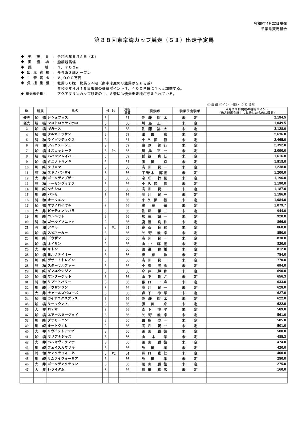 第38回東京湾カップ競走(SII)出走予定馬(PDF)