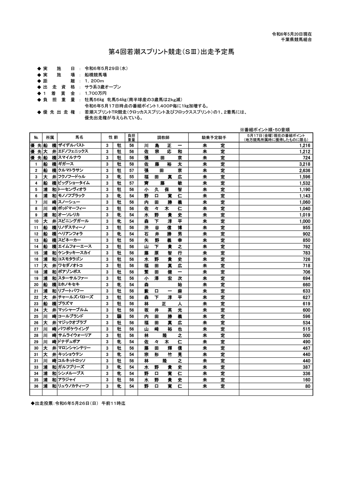 第4回若潮スプリント競走(SIII)出走予定馬(PDF)