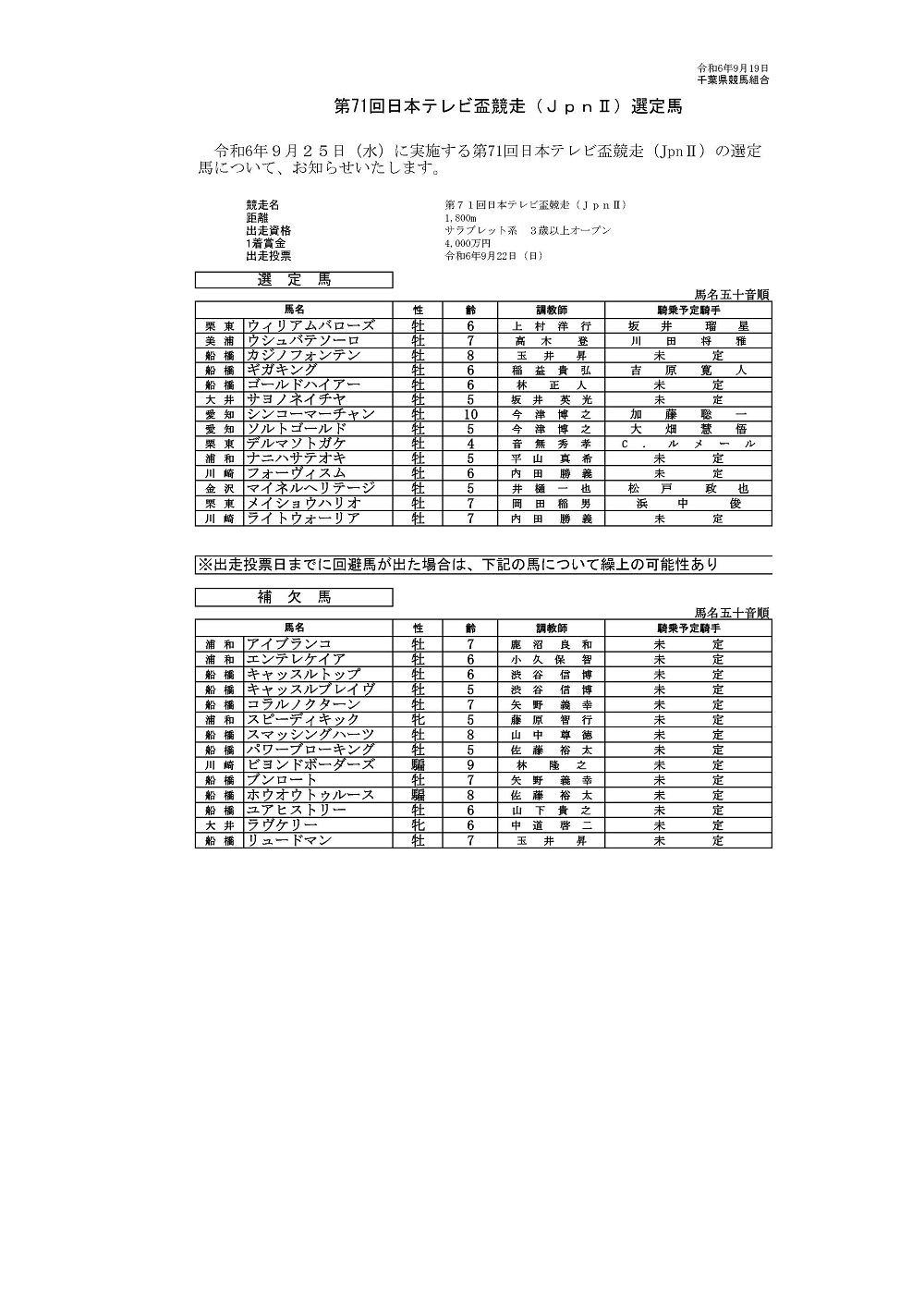 ※9月24日(火)に、第71回日本テレビ盃(JpnII)の前日発売を実施いたします。