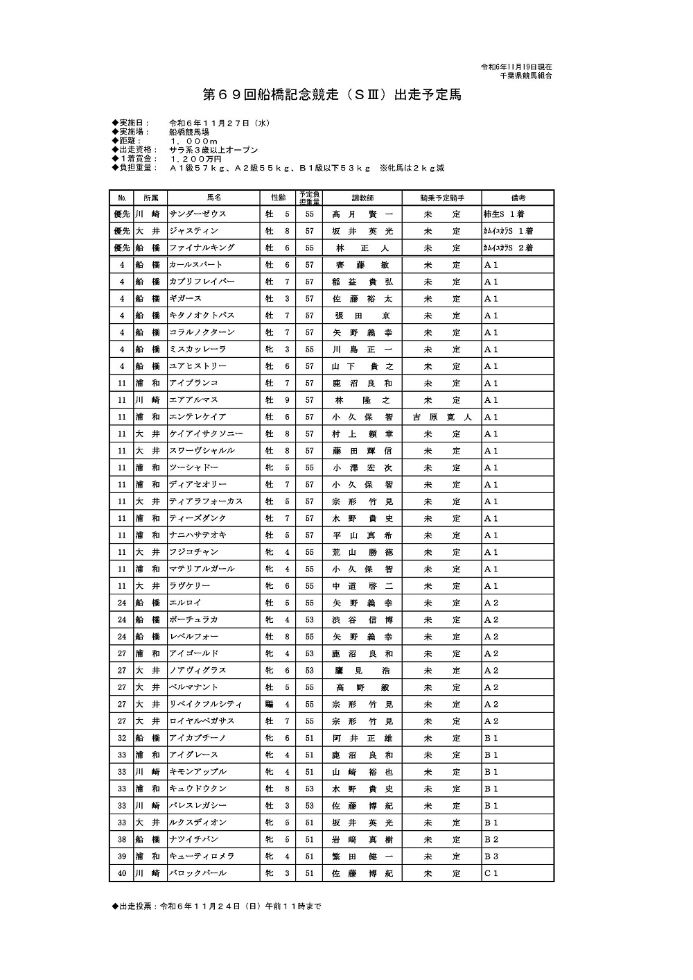 第69回船橋記念(SIII)出走予定馬(PDF)