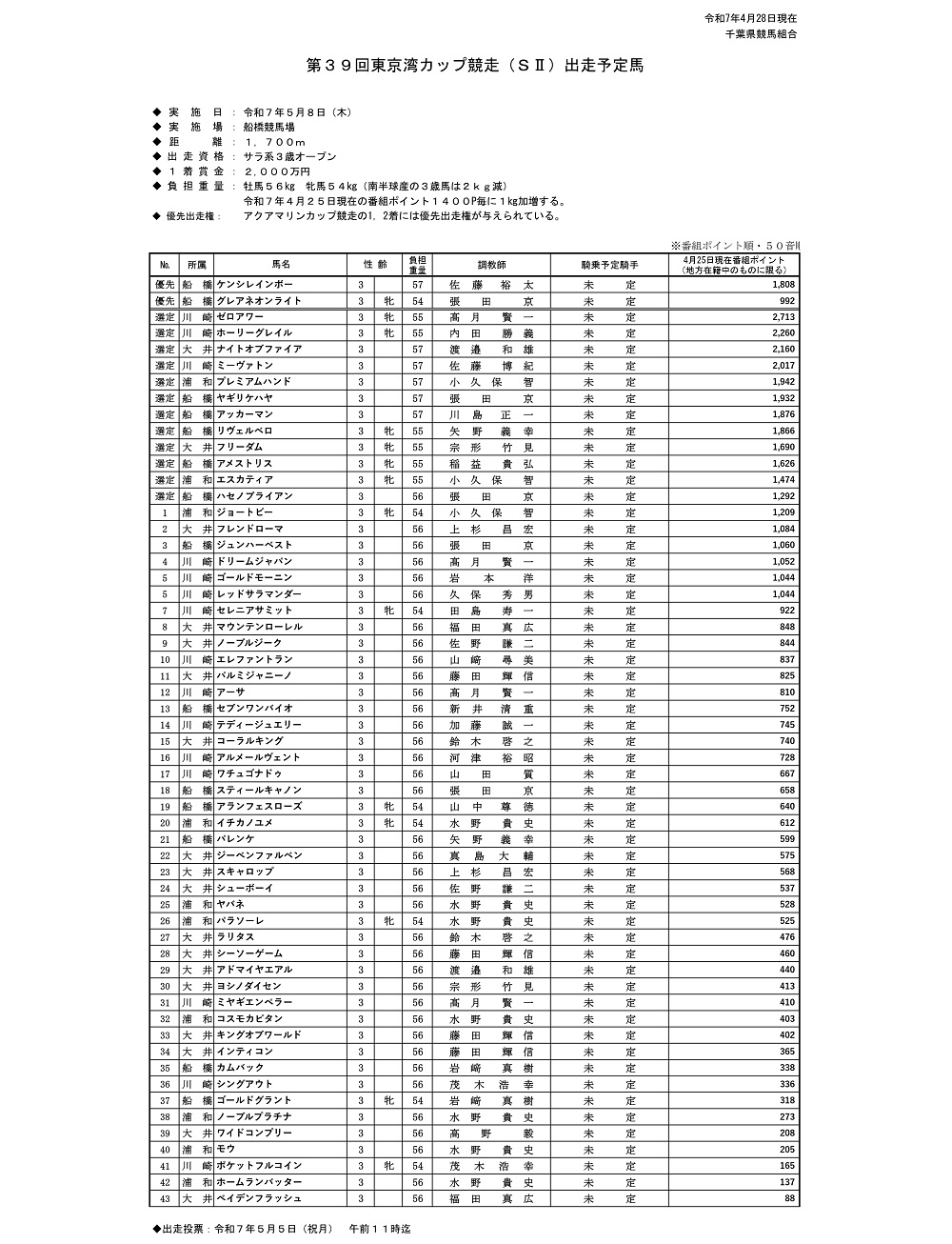 第39回東京湾カップ(SII)出走予定馬(PDF)