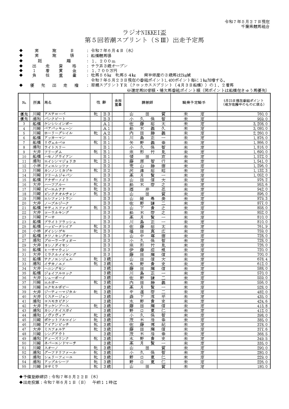 第5回若潮スプリント(SIII)出走予定馬(PDF)