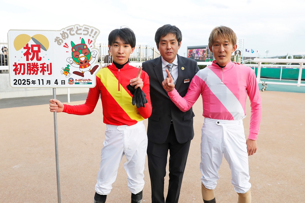 当競馬場所属の石崎 駿(いしざき しゅん)調教師が、令和7年度第8回船橋競馬第2日目第3レースにおいて、管理するキュイジニエール号で優勝し、地方競馬初勝利を達成しましたのでお知らせいたします。