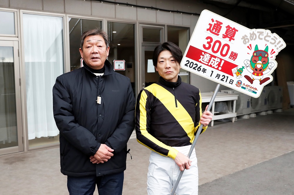 船橋競馬所属 玉井 昇(たまい のぼる)調教師が、本日(令和8年1月21日)、令和7年度第10回船橋競馬第3日第1レースにおいて、管理馬「キャプテンデューク」で通算300勝を達成いたしましたのでお知らせします。