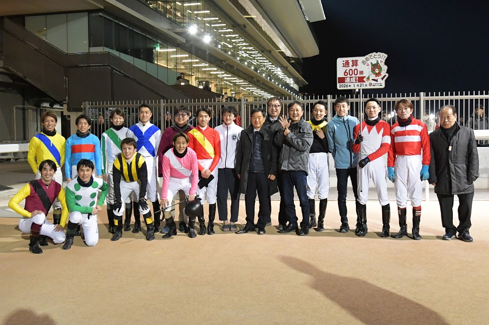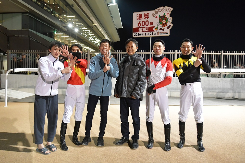 船橋競馬所属 石井 勝男(いしい かつお)調教師が、本日(令和8年1月21日)、令和7年度第10回船橋競馬第3日第12レースにおいて、管理馬「ラファエラエンゼル」で通算600勝を達成いたしましたのでお知らせします。