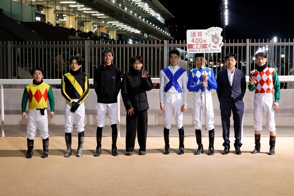 船橋競馬所属 山田 信大(やまだ のぶひろ)調教師が、本日(令和8年2月10日)、令和7年度第11回船橋競馬第2日第8レースにおいて、管理馬「タカオスマイル」で通算400勝を達成いたしましたのでお知らせします。