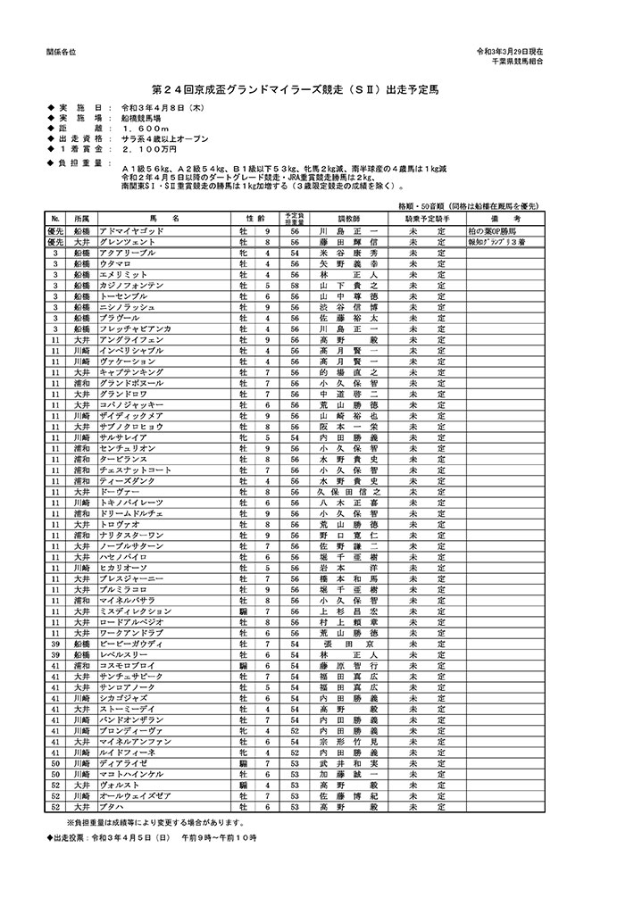 第24回京成盃グランドマイラーズ競走(SII)出走予定馬(PDF)